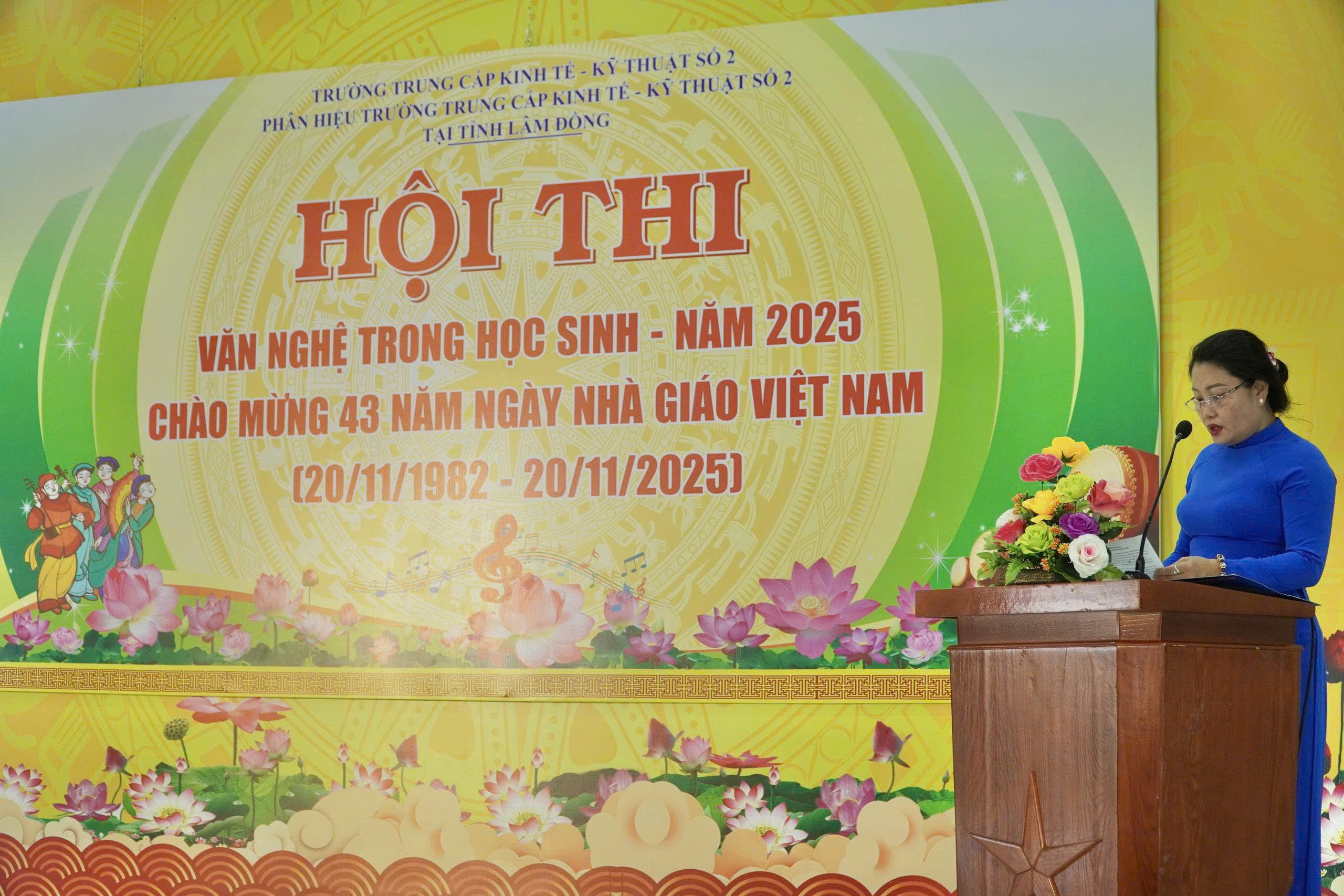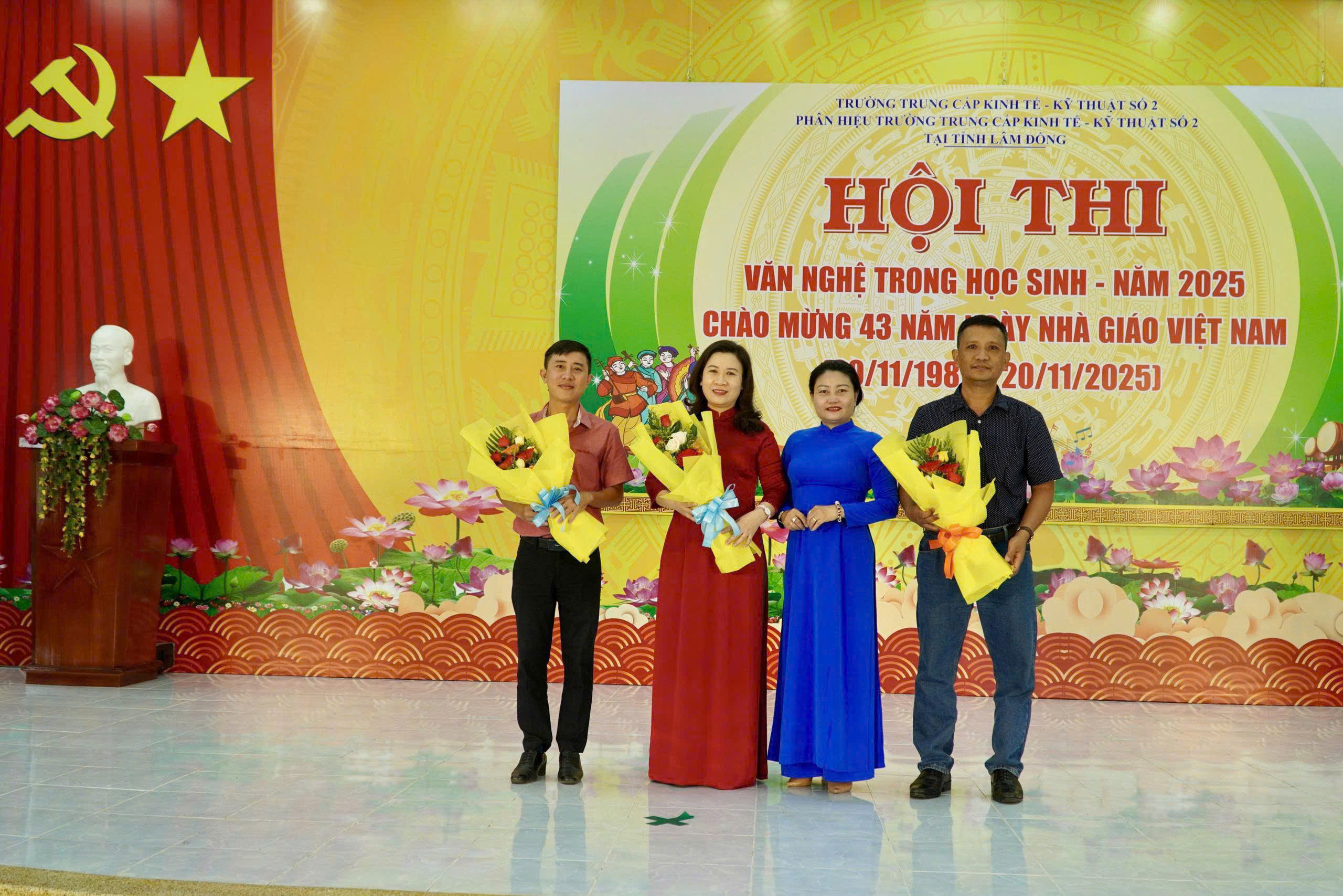 Sáng ngày 16/11/2025, tại cơ sở 2 của Phân hiệu Trường Trung cấp Kinh tế - Kỹ thuật số 2 tại tỉnh Lâm Đồng đã diễn ra Hội thi văn nghệ dành cho học sinh nhằm Chào mừng kỷ niệm 43 năm ngày Nhà giáo Việt Nam 20/11. Hội thi thu hút sự góp mặt của đông đảo viên chức, giáo viên, học sinh của Phân hiệu, tạo nên một không khí vừa trang nghiêm vừa sôi động. Đây là dịp để học sinh, thầy cô cùng nhau sẻ chia những khoảnh khắc ý nghĩa, gửi gắm tình cảm yêu quý tới những người lái đò thầm lặng.