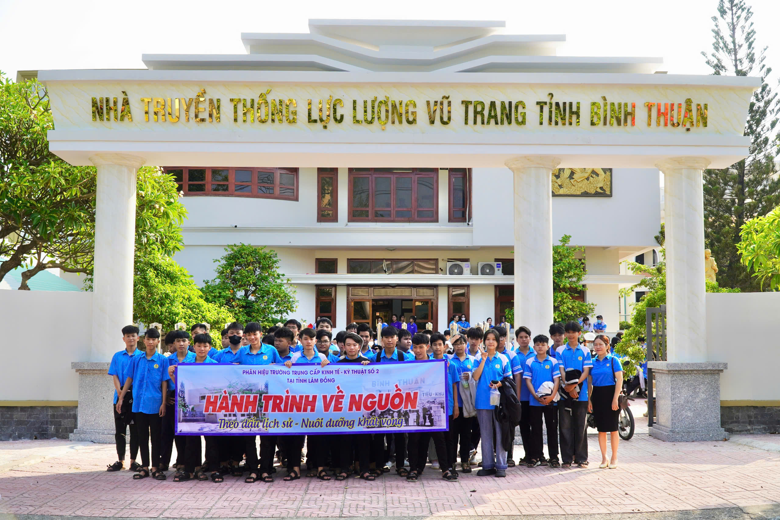 Hoà vào những ngày tháng Tư rực nắng, khi cả nước đang hướng về kỷ niệm 51 năm ngày Giải phóng miền Nam, thống nhất đất nước (30/04/1975- 30/04/2026) và cũng để góp phần giáo dục truyền thống yêu nước, lòng tự hào dân tộc sâu rộng trong viên chức, giáo viên và học sinh, giúp học sinh hiểu rõ hơn về lịch sử đấu tranh của lực lượng vũ trang địa phương, để các em thấy được trách nhiệm của thế hệ trẻ hôm nay trong việc giữ gìn và phát huy giá trị hoà bình. Sáng ngày 18/04/2026, Phân hiệu Trường Trung cấp Kinh tế Kỹ thuật số 2 tại tỉnh Lâm Đồng đã tổ chức một chuyến tham quan đầy ý nghĩa tại Nhà truyền thống Lực lượng vũ trang (LLVT) tỉnh Bình Thuận (cũ). Đây không chỉ là một buổi ngoại khóa, mà là hành trình tìm về những giá trị cốt lõi, nơi quá khứ hào hùng gặp gỡ thế hệ tương lai.
